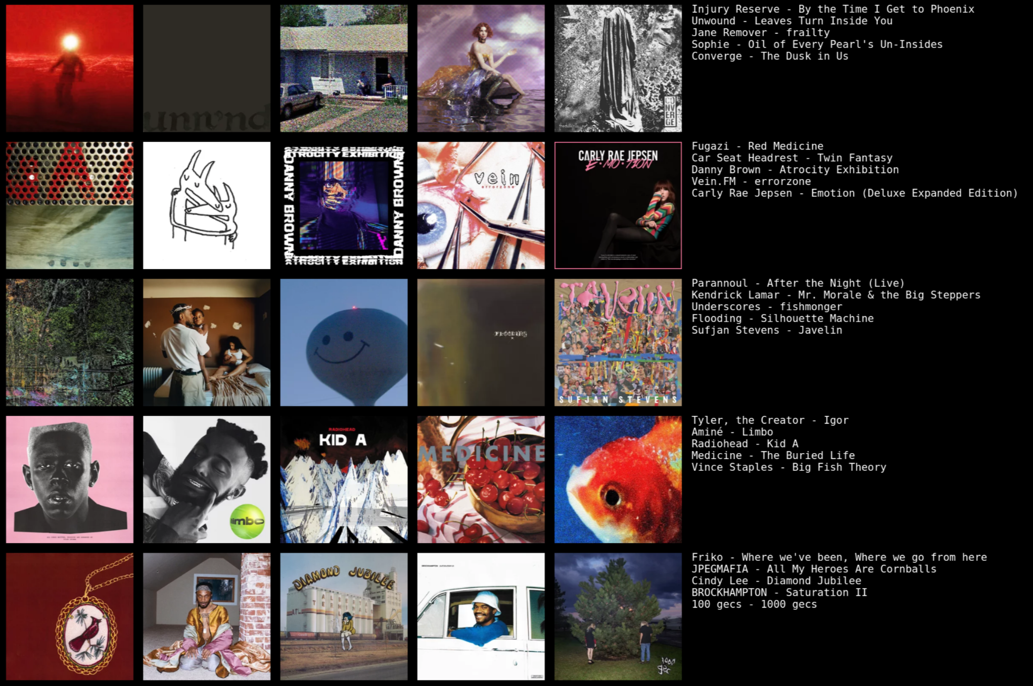i must have fallen asleep on album shuffle cause i dont remember listening to polyphia, chon or the genesis owusu albums.